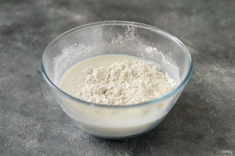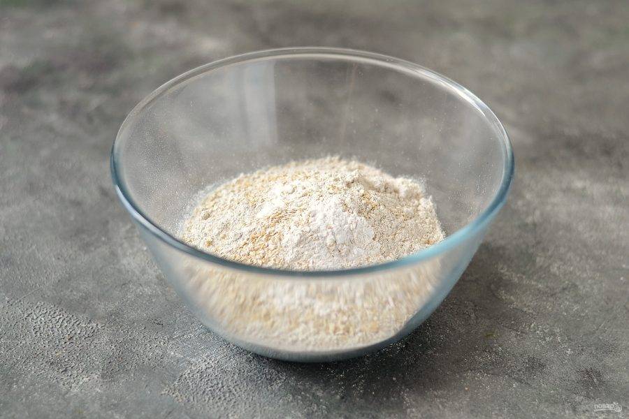 Соедините жидкие и сухие ингредиенты, перемешайте.
