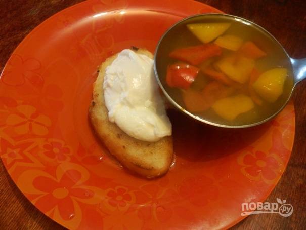 7. А затем сверху заливаем готовым бульоном с перцем.