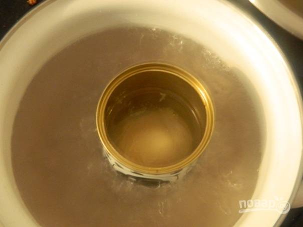 5. В отдельной кастрюле кипятим воду, добавляем уксус и аккуратно вбиваем яйцо. Я использую жестяную банку с обрезанным дном. Яйцо не растекается и получается очень аккуратным по форме.