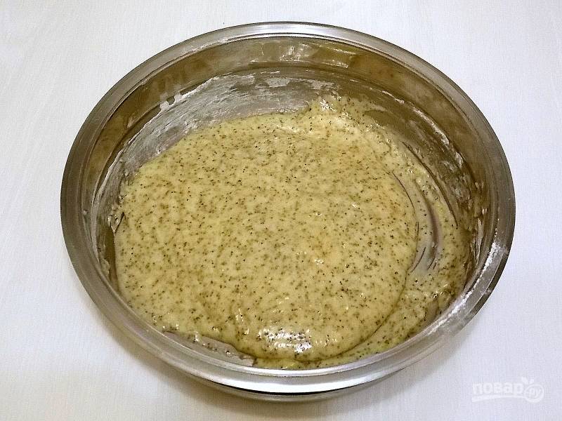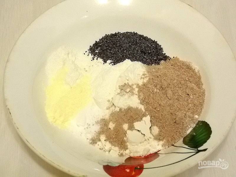 Смешайте оба вида муки, мак, разрыхлитель, соду.
