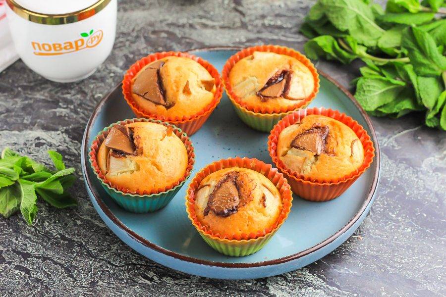 Разогрейте духовку до 180 градусов и поместите в нее заготовки маффинов. Испеките примерно 15-20 минут до румяности. Затем извлеките и остудите.