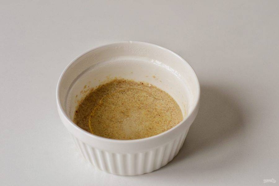 Залейте льяную муку теплой водой, оставьте на 5 минут.