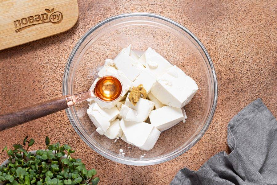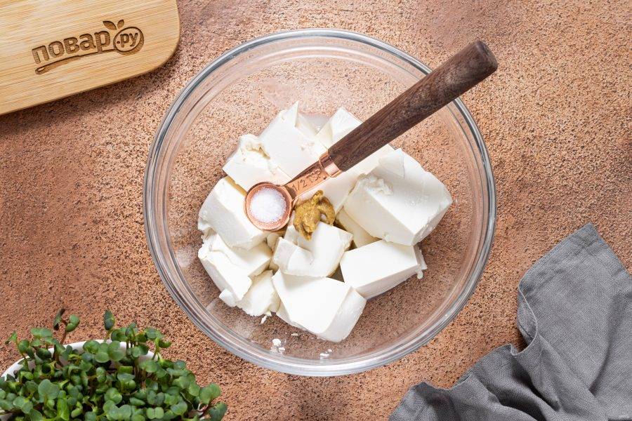 Шелковый тофу аккуратно извлеките из упаковки, слейте жидкость и нарежьте на крупные кубики. Переложите в емкость для измельчения.