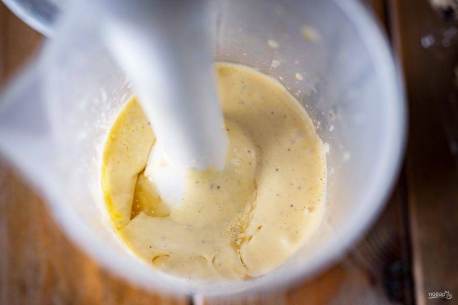 Погружным блендером перебейте эти ингредиенты до полного соединения и получения однородной смеси.