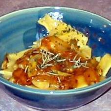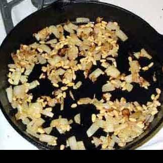 Рецепт приготовления макарон с помидорами, сосновыми орехами, луком и чесноком.