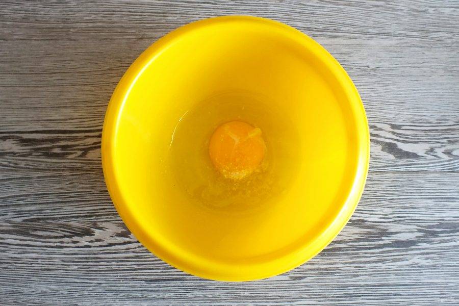 В чашу разбейте яйцо, добавьте соль. Размешайте вилкой.