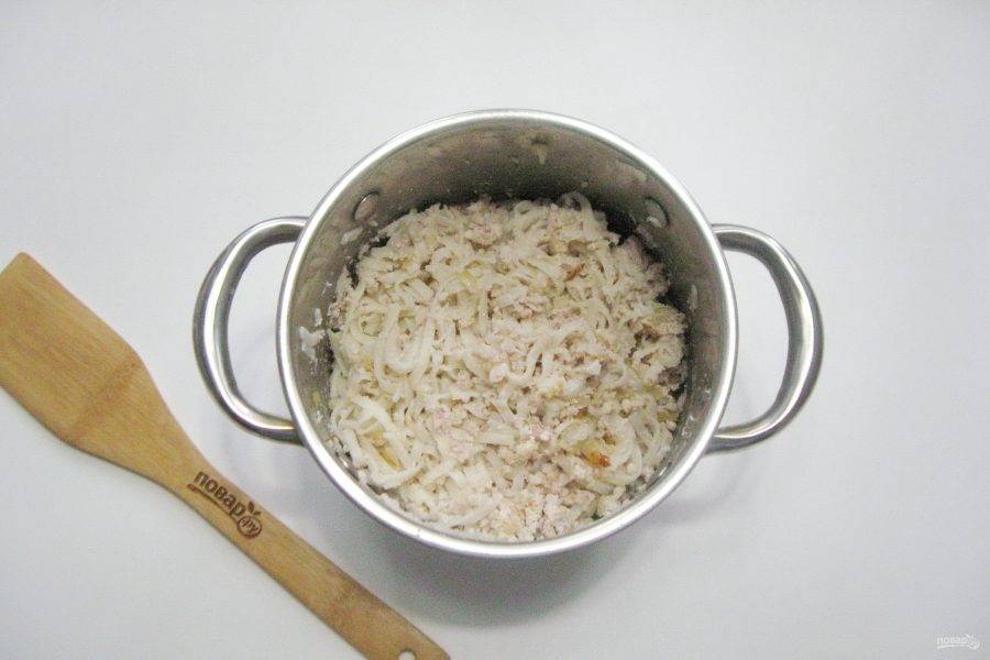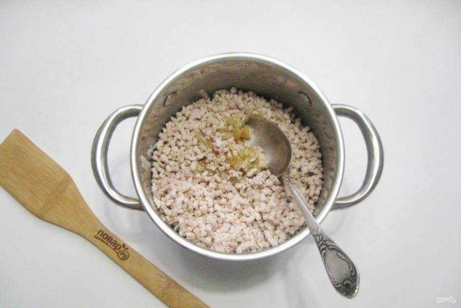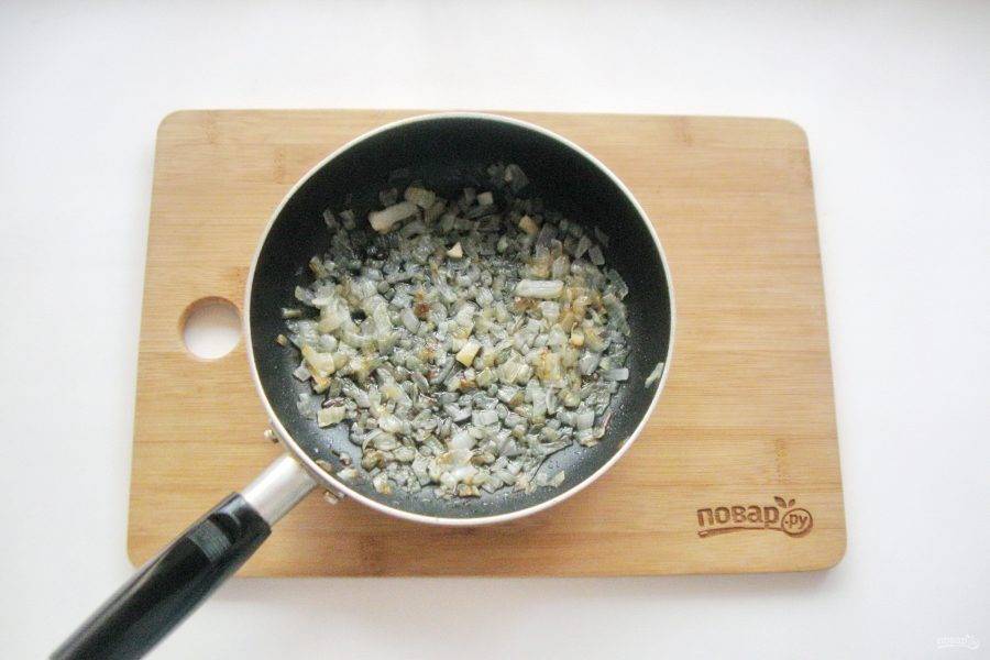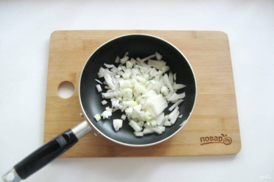 Репчатый лук очистите, помойте и мелко нарежьте. Выложите в сковороду.