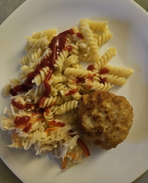 10. Выложите макароны в сотейник к овощам, добавьте соль, специи и немного водички. На среднем огне доведите до полной готовности. Вот и весь секрет, как приготовить макароны с котлетами. Приятного аппетита!