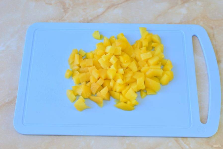 Для приготовления торта подготовьте все необходимые ингредиенты. Персики в начинку можно брать свежие или консервированные.