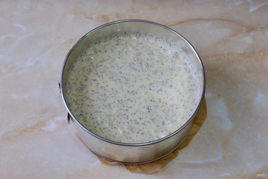 Готовое тесто перелейте в форму для выпечки (диаметром 16-18 см.) и поставьте в духовку при температуре 180 градусов, примерно на 40-50 минут. Ориентируйтесь по своей духовке.