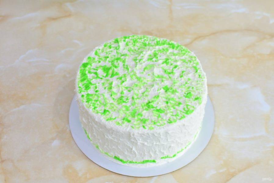 Для внешнего выравнивания и украшения взбейте вторую часть ингредиентов для крема. Выровняйте торт снаружи и украсьте на свой вкус.