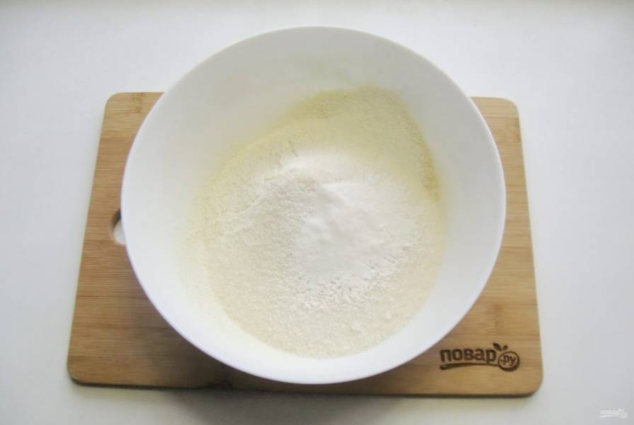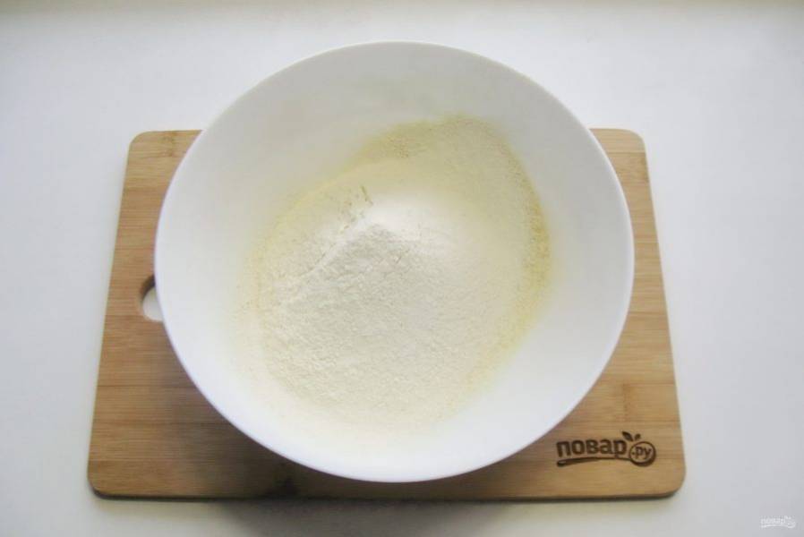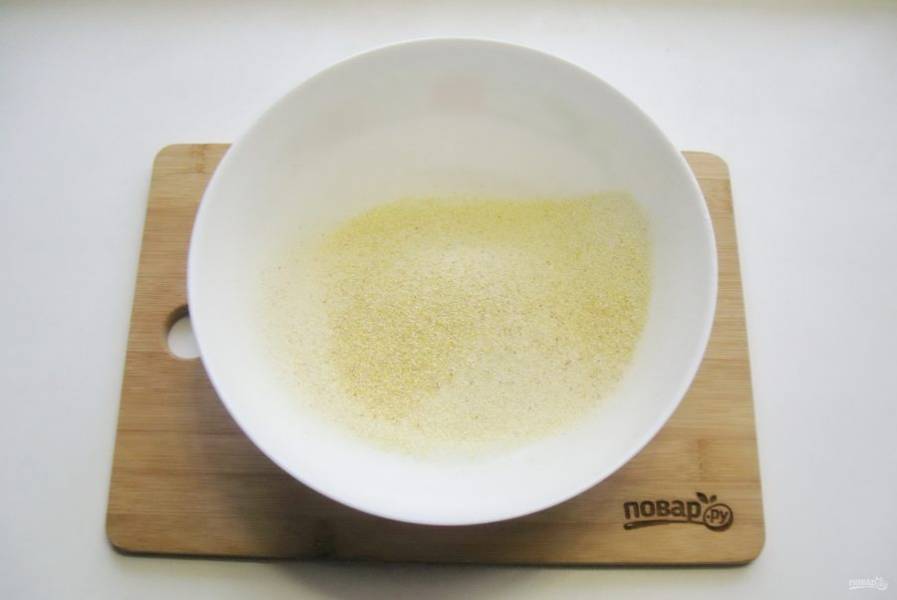 В глубокую миску просейте кукурузную муку.