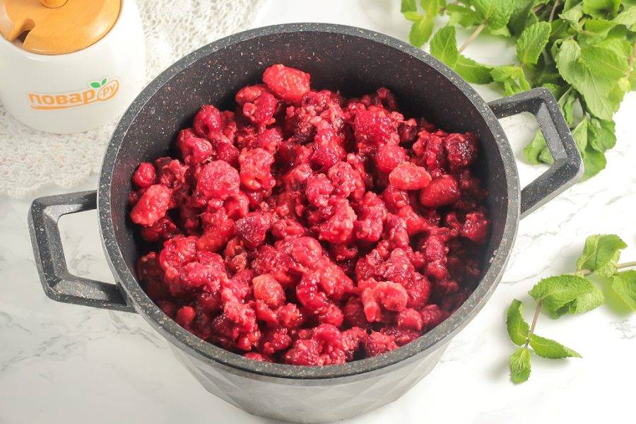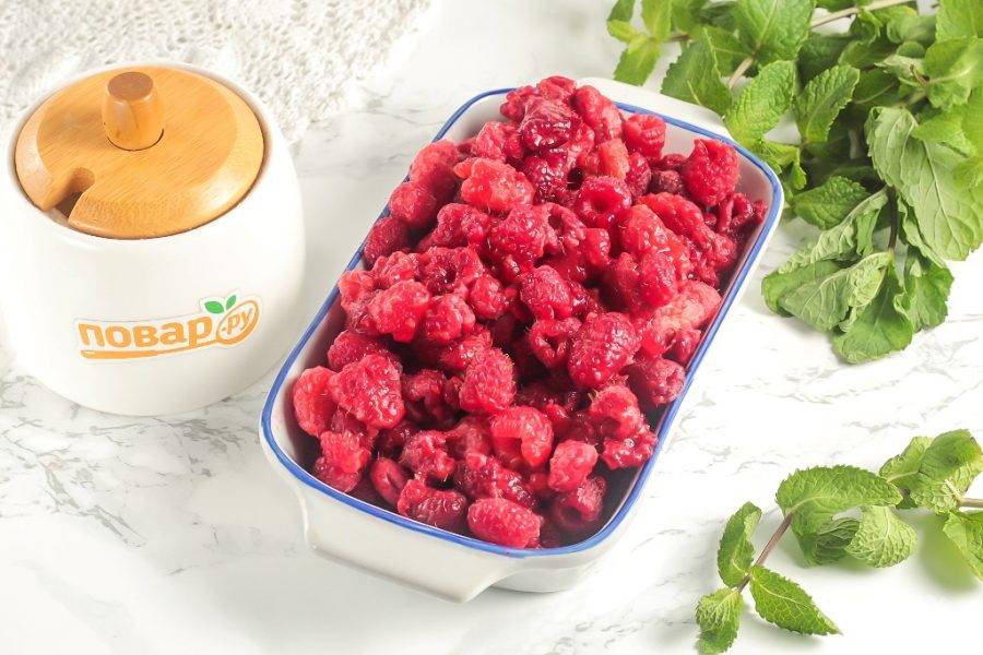 Подготовьте указанные ингредиенты. Выбирать лучше всего не сочную малину, чтобы ягодки держали форму после варки.