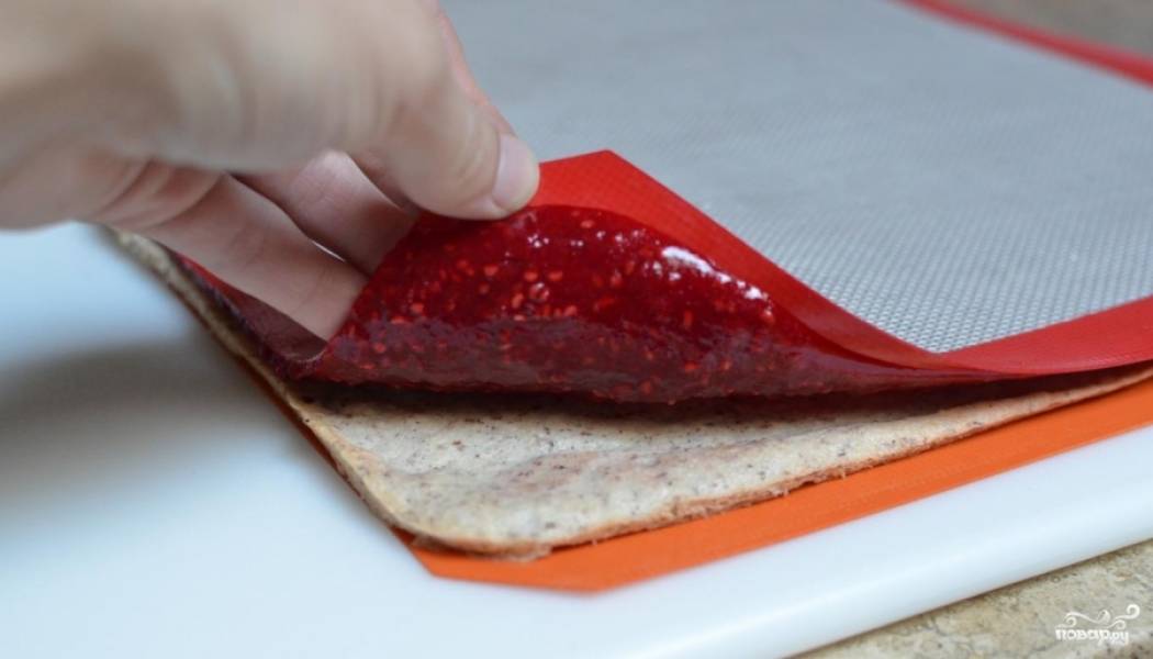 Разложить тесто на лист пергамента тонким слоем и выпекать пр и180 градусах 15 минут.