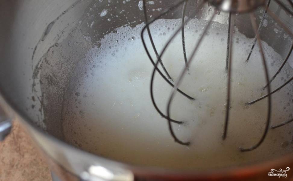 Добавлять понемногу сахар, белки должны сохранять форму.