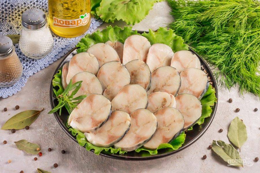 Подготовьте указанные ингредиенты. Если скумбрию покупали замороженной, то разморозьте ее в течение 30 минут перед началом засолки.