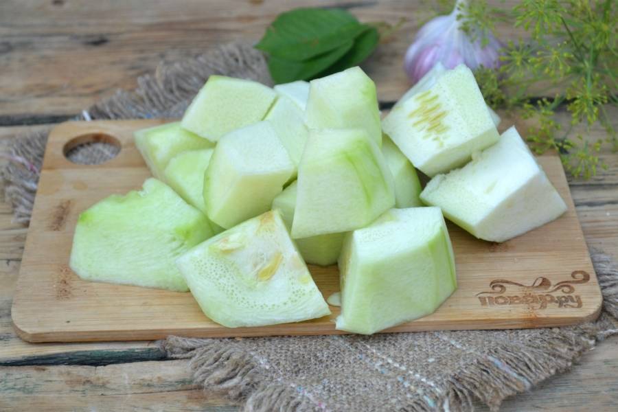 Подготовьте все необходимые ингредиенты. Кабачки у меня уже не совсем молодые, но еще мягкие с бело-зеленой кожурой. Такие нам подходят. Всю зелень промойте под проточной водой, а кабачки очистите от кожуры.