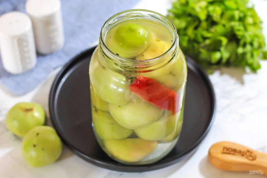 Залейте рассол в банку или контейнер до верха, чтобы он полностью покрыл помидоры. Закрутите банку крышкой и храните в прохладном месте. Срок приготовления — 1 месяц. Если будете хранить в холодильнике, то помидоры будут готовы в течение 1-1,5 месяцев.