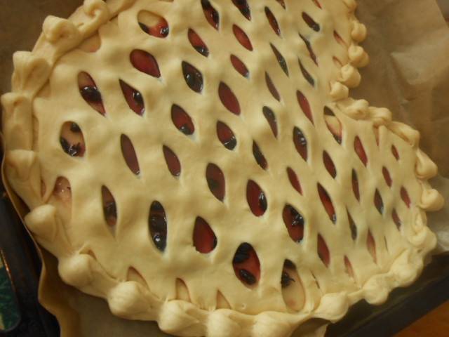Укладываем на пирог,срезаем все лишнее.Дулаем жгутики и укладываем по краям пирога.В принципе,оформлять можно по-разному,кому как подсказывает его фантазия.