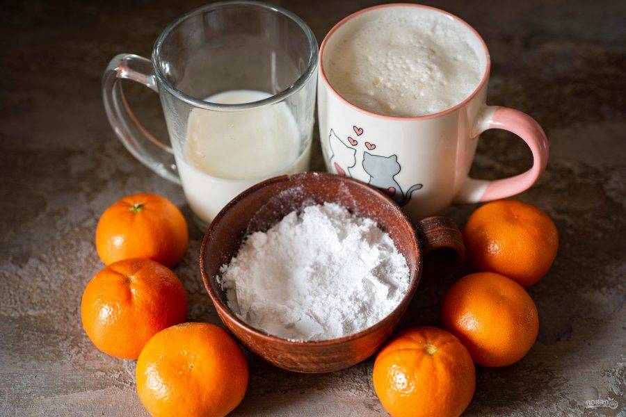 Подготовьте все ингредиенты. Сливки должны быть холодными, из холодильника. Мандарины предварительно промойте в проточной воде.