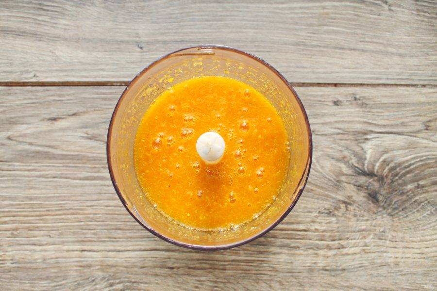 Пробейте все блендером до однородной массы. Перелейте мандариновое пюре в чистую, сухую банку, закройте и уберите в холодильник.