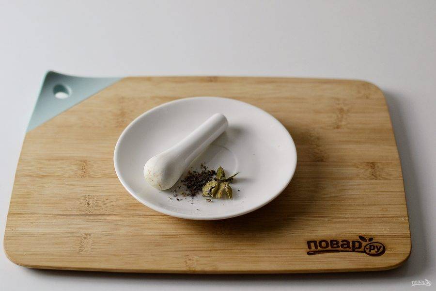 Стручки кардамона раздавите в ступке.