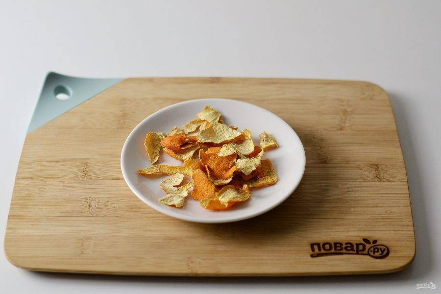 Очистите мандарины. Кожуру высушите любым удобным способом. Можно просто оставить ее на 1 день лежать, а можно воспользоваться сушилкой или духовкой.