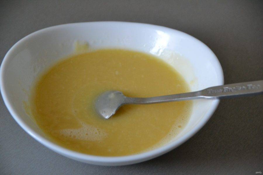 Влейте в желтковую массу смесь молока и растительного масла.