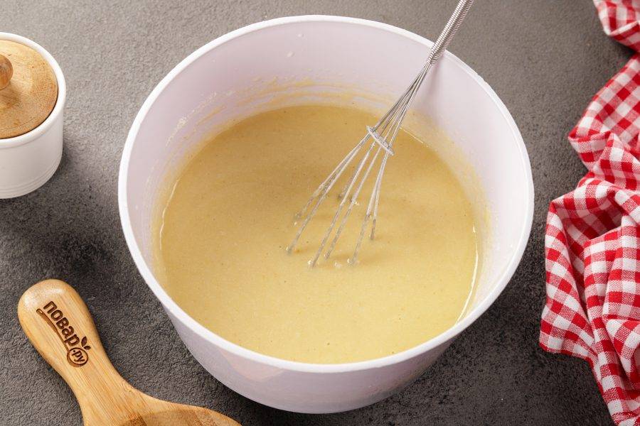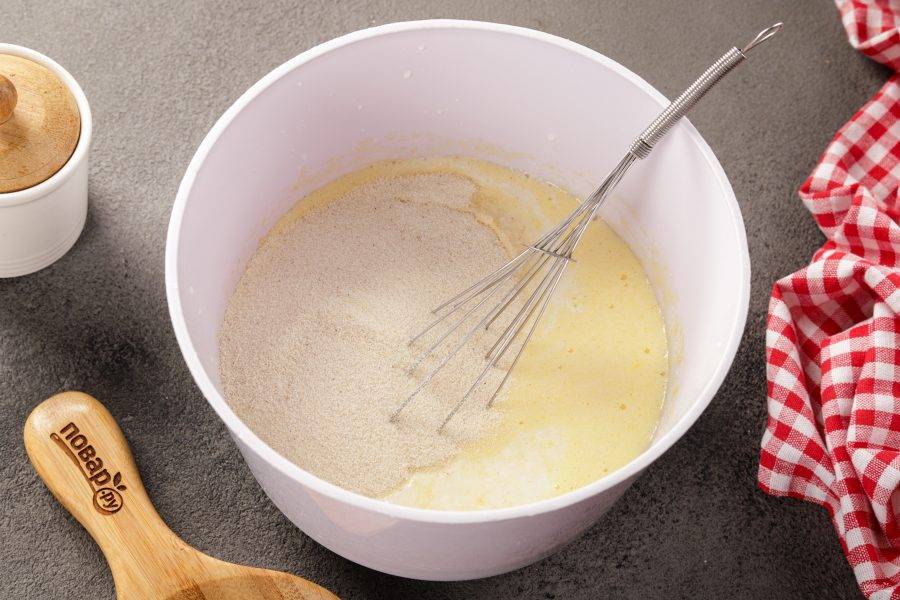 Перемешайте и оставьте манную крупу набухать на 30 минут.