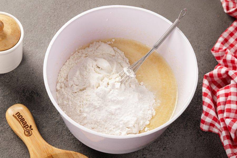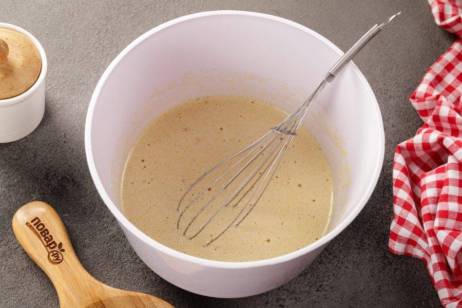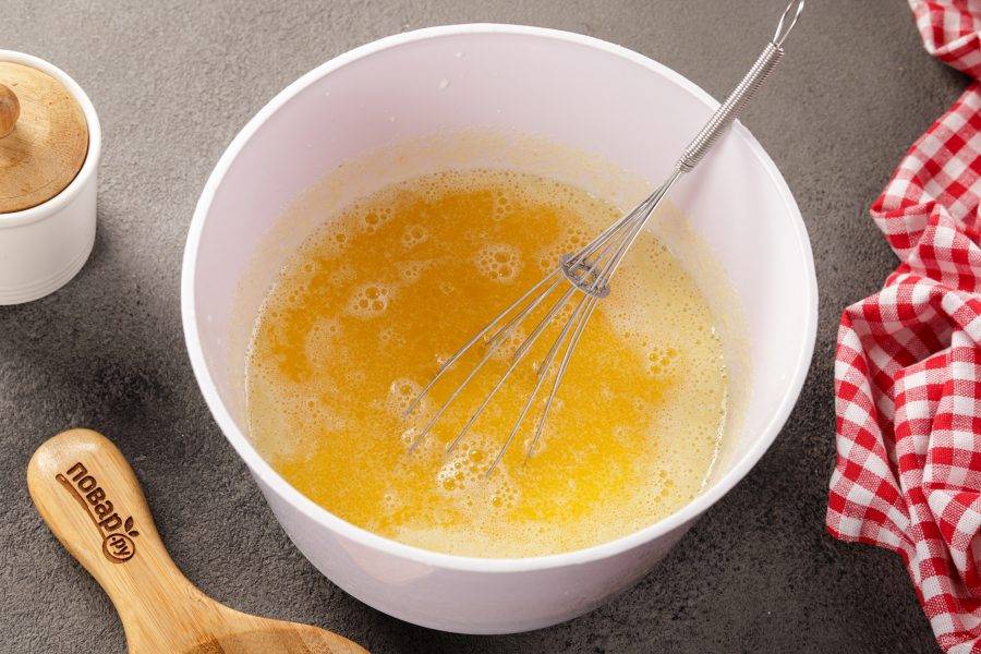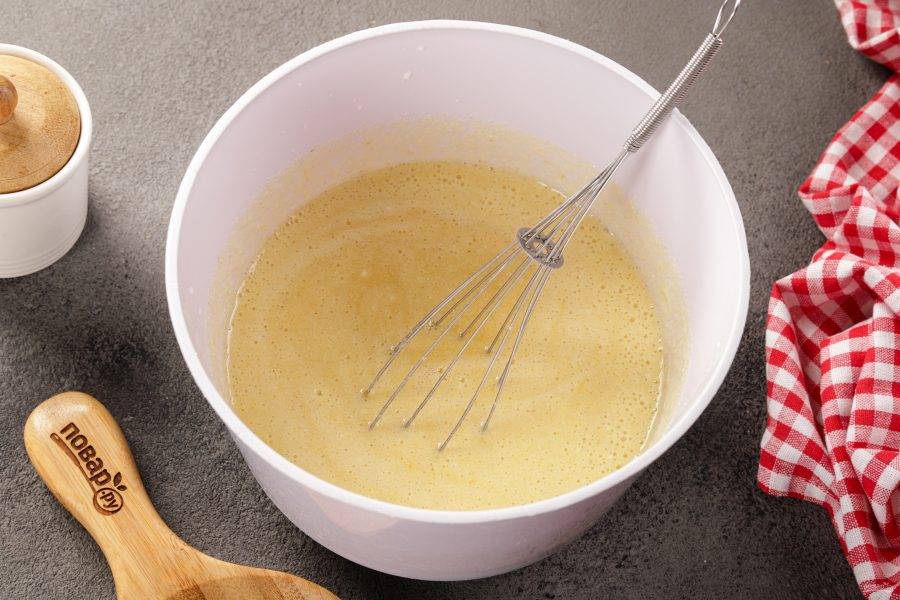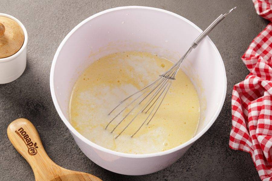 В глубокой миске взбейте яйца с сахаром и ванилином.