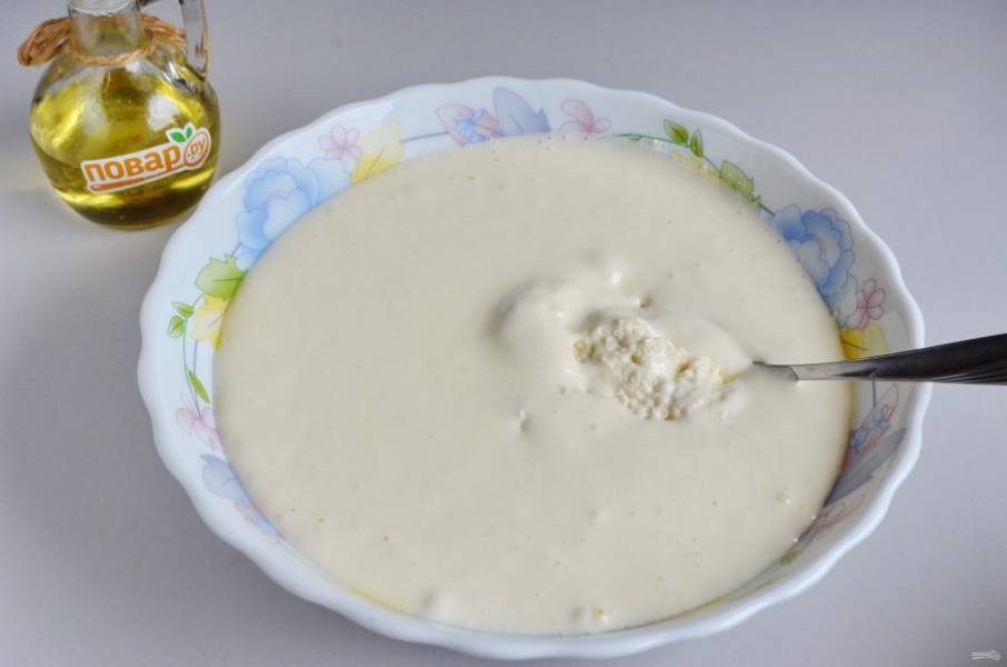 3. Манка должна немного набухнуть, пропитаться кефиром.