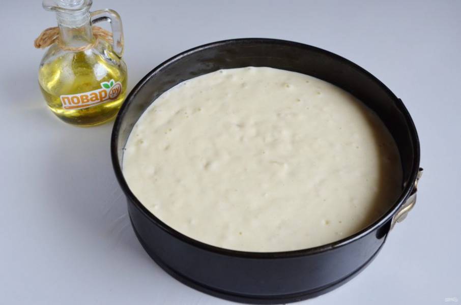 6. Форму застелите пергаментом, смажьте растительным маслом, перелейте тесто. Отправьте его в горячую духовку (180 градусов) примерно на час. Проверяйте на готовность лучиной.