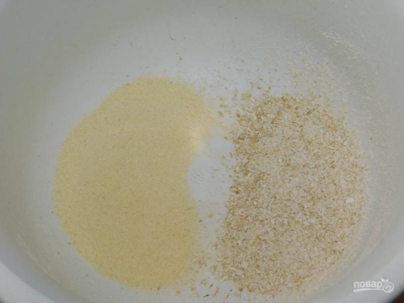 Овсяные хлопья измельчите с помощью блендера. Соедините с манкой.