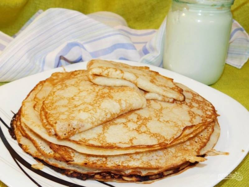 Рецепт этот может пригодиться, если хочется блинов, а яиц дома нет или же на яйца аллергия. Простой рецепт и быстрое в приготовлении блюдо.