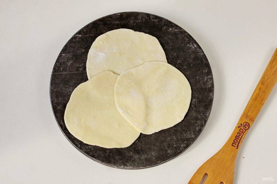Каждый кусочек обваляйте в муке и раскатайте в форме круга.
