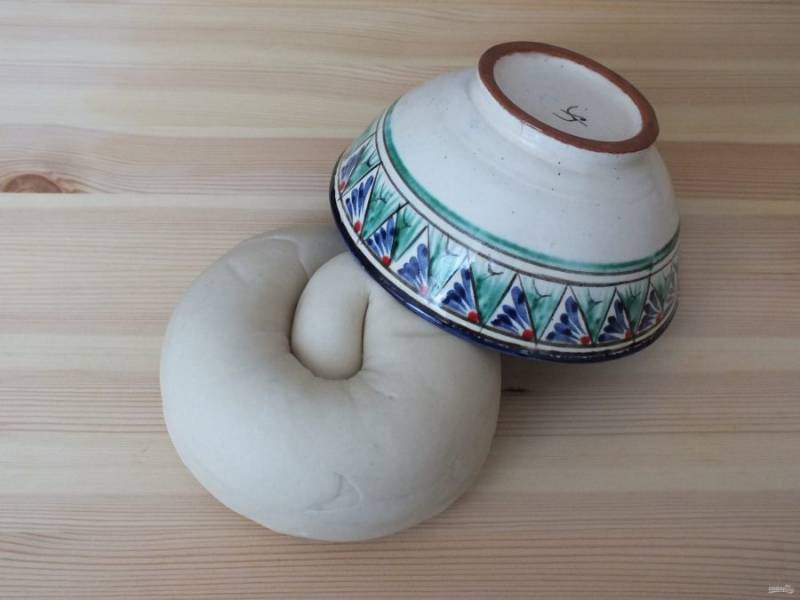 Скатайте из теста валик и закрутите "улиткой", накройте чашей и оставьте на 30 минут при комнатной температуре.