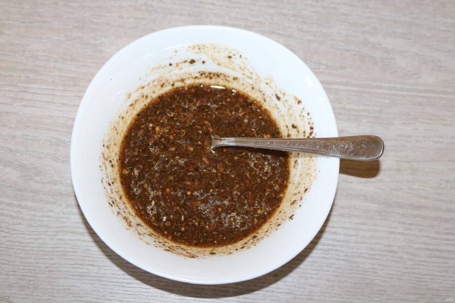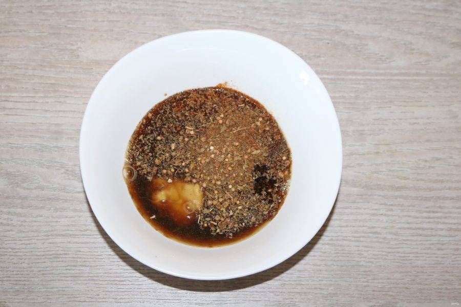 Добавьте к соку соевый соус, специи, горчицу, масло.