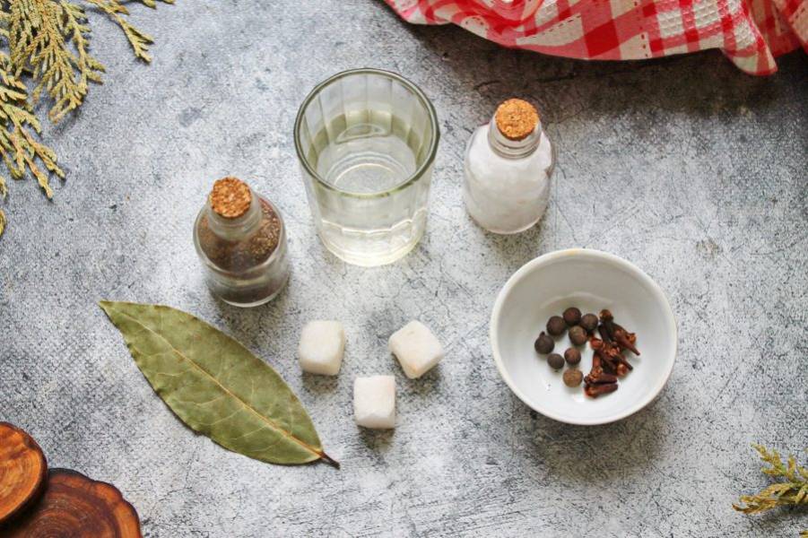 Подготовьте все необходимые ингредиенты для приготовления маринада для грибов.