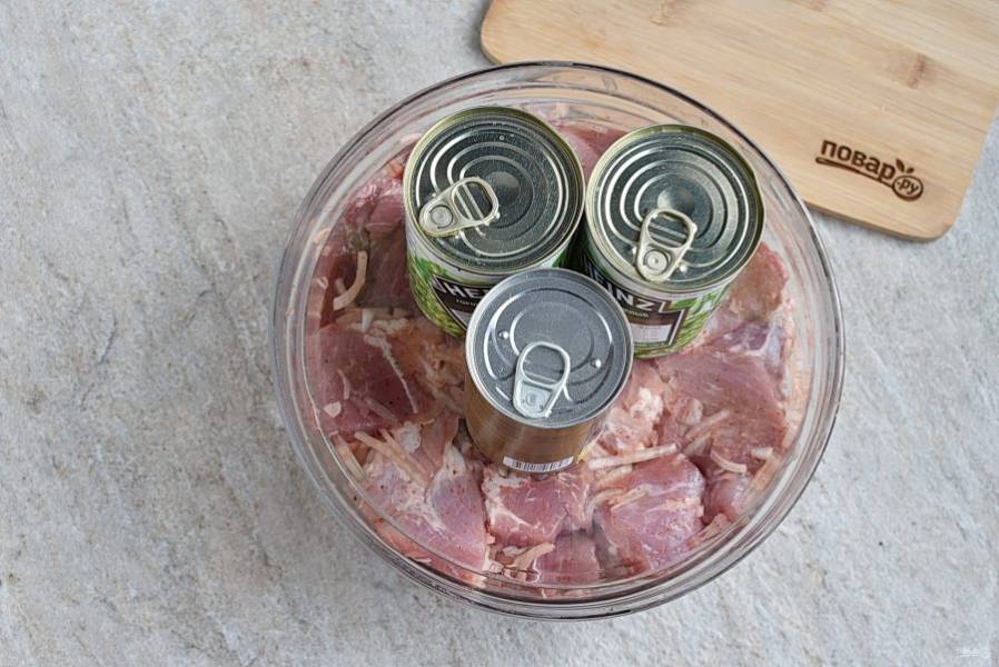 Нарезанное крупными кусочками мясо выложите в просторную неокисляющуюся посуду. Сверху засыпьте тонко нашинкованным репчатым луком.