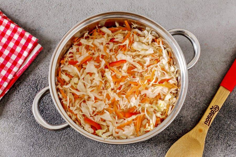 Добавьте к капусте тёртую на крупной тёрке морковь.