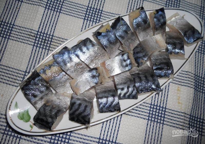 Оставьте рыбу на ночь при комнатной температуре. Затем переложите её на двое суток в холодильник. После этого удалите кости, а филе нарежьте кусочками.