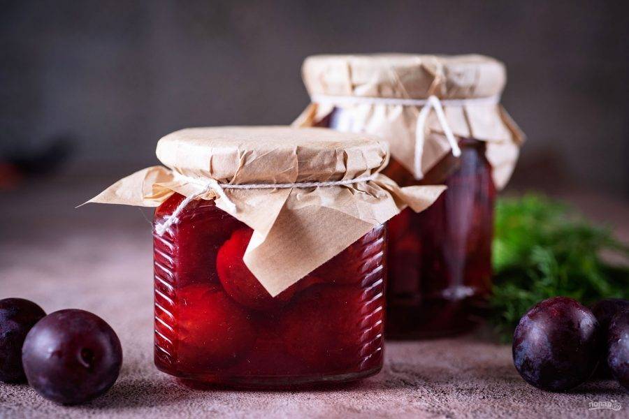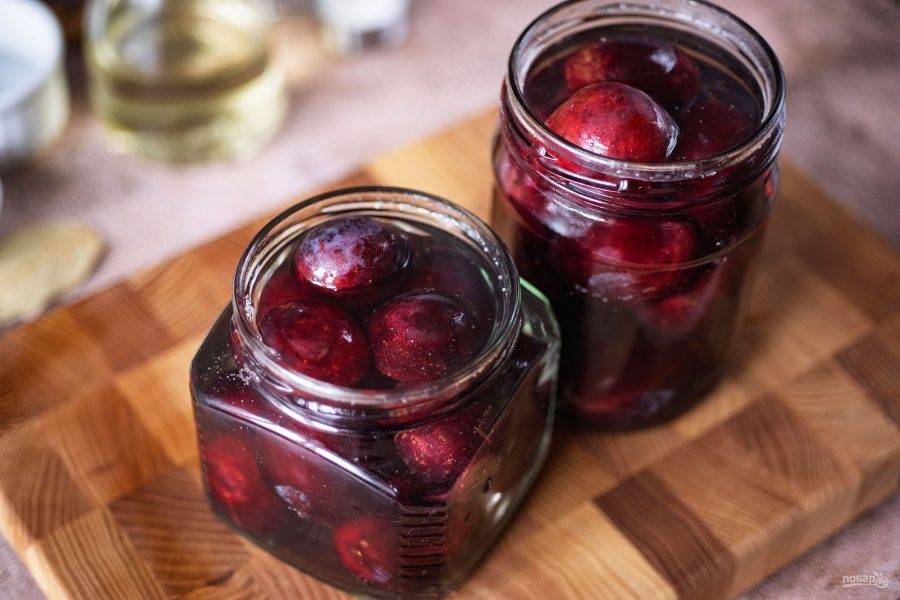 На утро отправьте готовую заготовку маринованных слив в банках на хранение в кладовую.