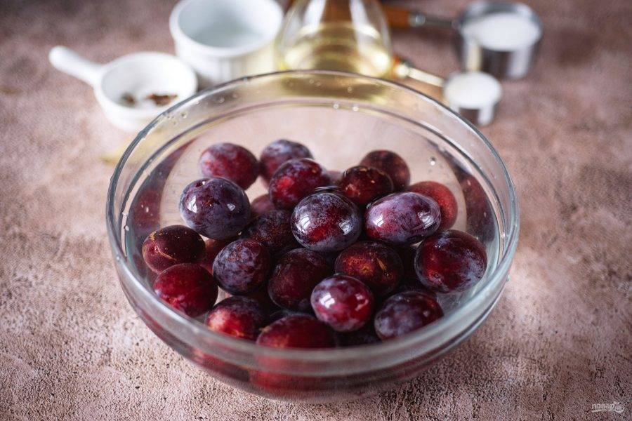 Сливы тщательно вымойте в холодной воде и отложите в сторону порченные экземпляры.