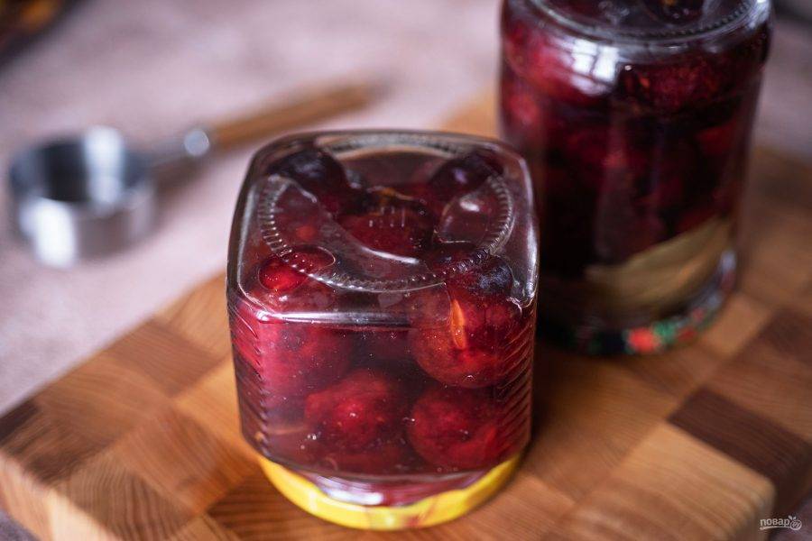 Теперь банки со сливами герметично укупорьте крышками и переверните их вверх дном, укутайте толстым одеялом и оставьте на ночь медленно остывать.