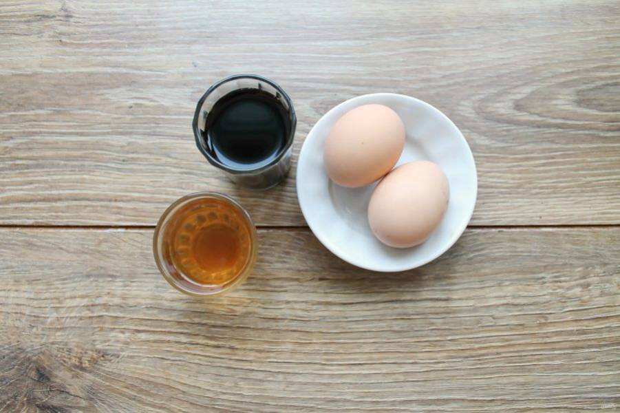 Подготовьте все необходимые ингредиенты для приготовления маринованных желтков. Яйца тщательно вымойте в теплой воде и вытрите насухо.