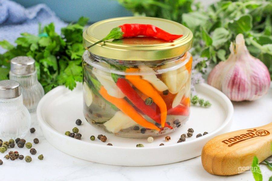 Если вы любитель острых вкусовых ощущений, то обязательно заготовьте адский перец на зиму, замариновав его с чесноком и пряностями. Подавайте его с мясными или рыбными блюдами, колбасами, паштетом.