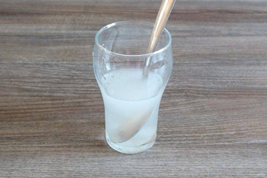 В стакане смешайте сахар, 50 мл. теплой воды и уксус. Перемешайте.