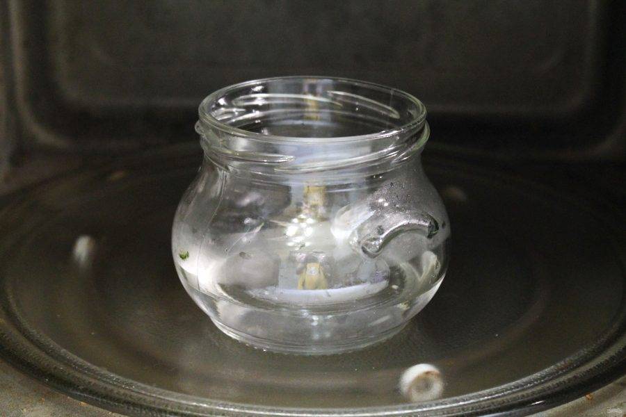 Банки и крышки тщательно вымойте мягкой щеткой с пищевой содой. Стерилизуйте их любым удобным способом, крышки прокипятите в течение 10 минут.