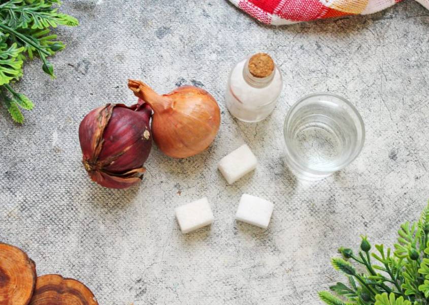 Подготовьте все необходимые ингредиенты для приготовления маринованного лука. Репчатый лук почистите и сполосните.