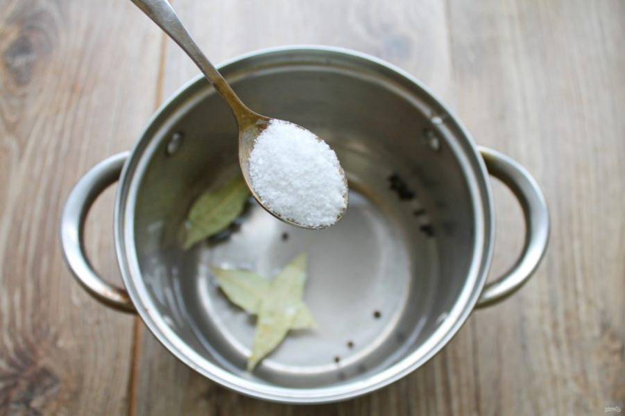 Добавьте в кастрюлю соль и кипятите маринад в течение 3 минут.